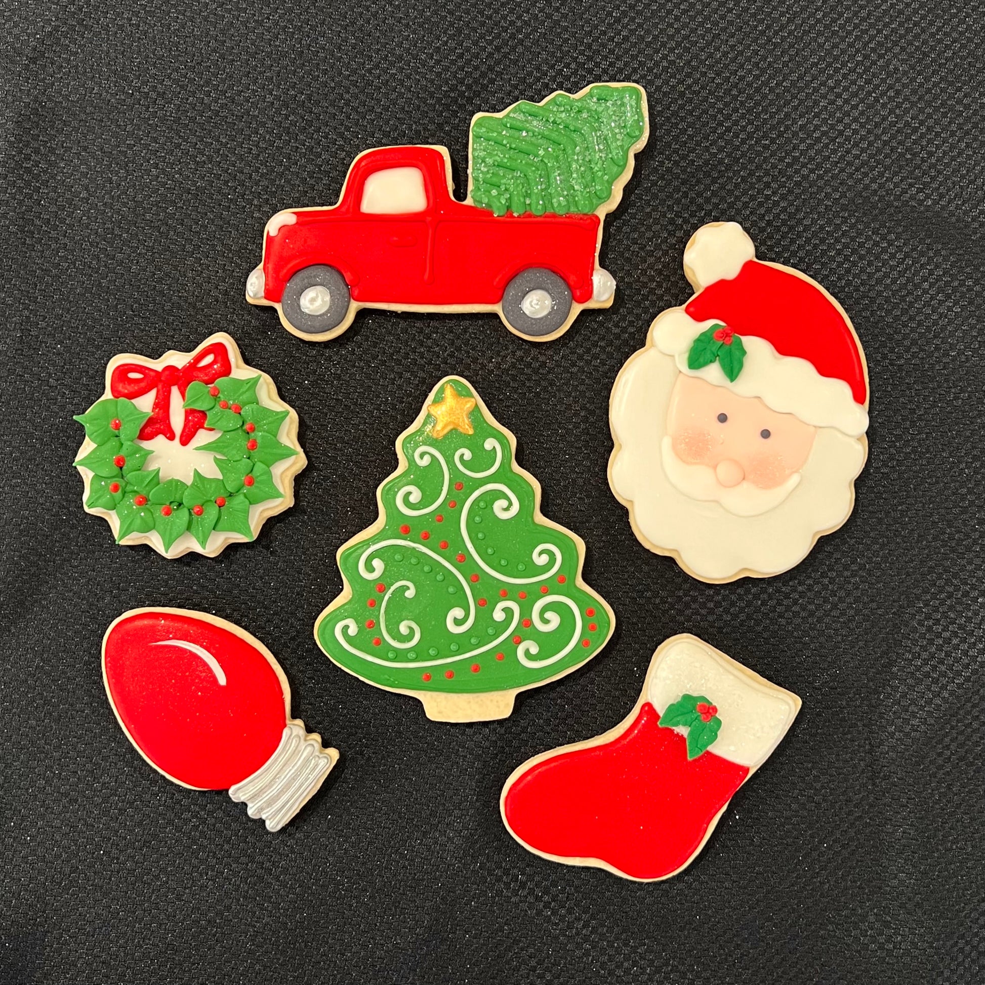 Christmas Cookie Set – Santa, Tree, Truck with Tree, Wreath, Stocking & Sparkle Light Bulb