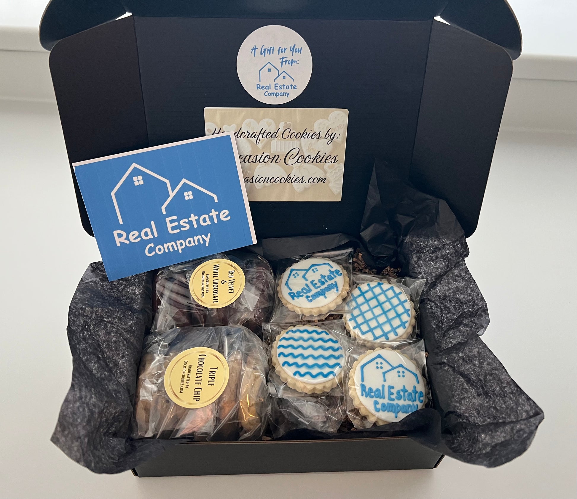 ✔ 4 Custom Decorated Sugar Cookies – Featuring your logo, initials, or a personalized message.