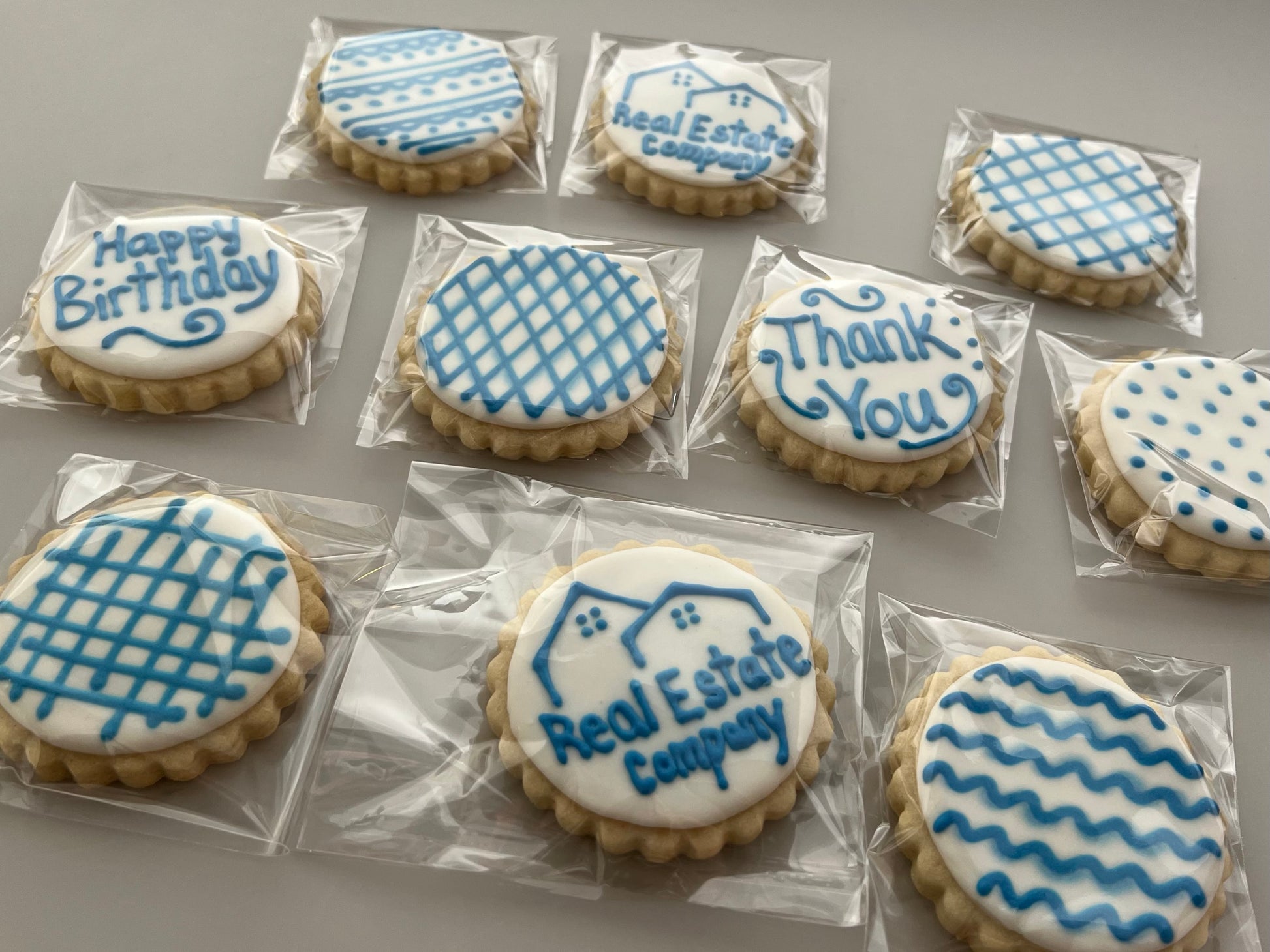 ✔ 6 Custom Logo Sugar Cookies – Hand-decorated with royal icing, perfect for branding