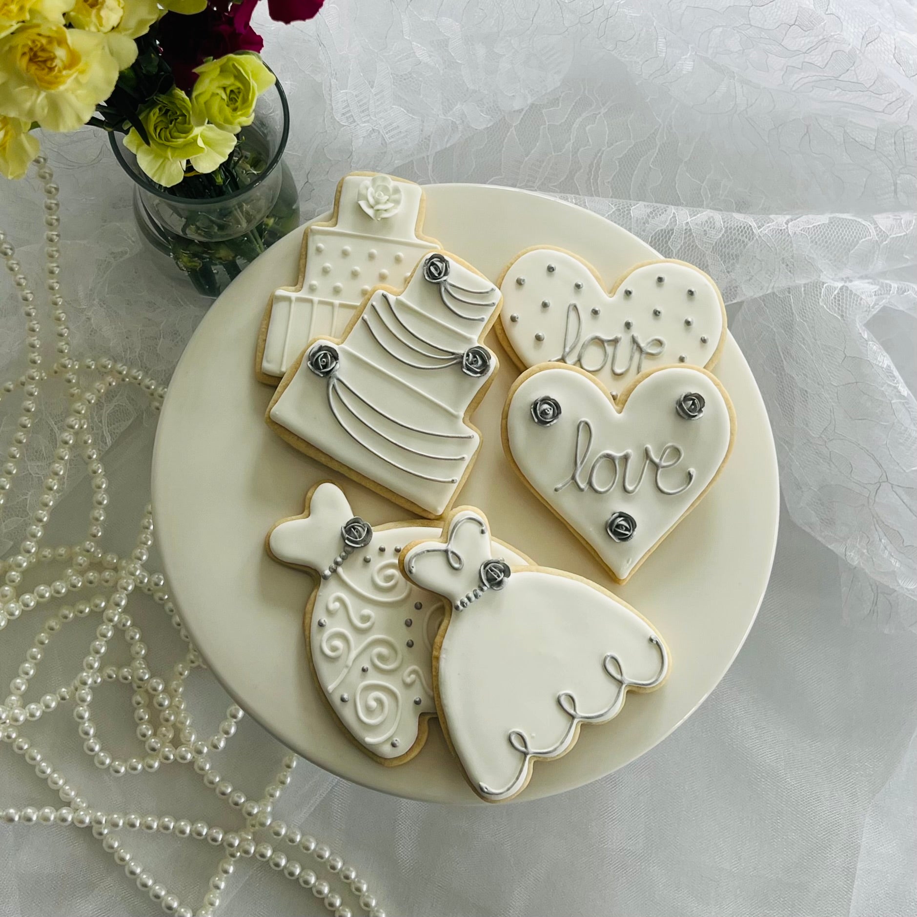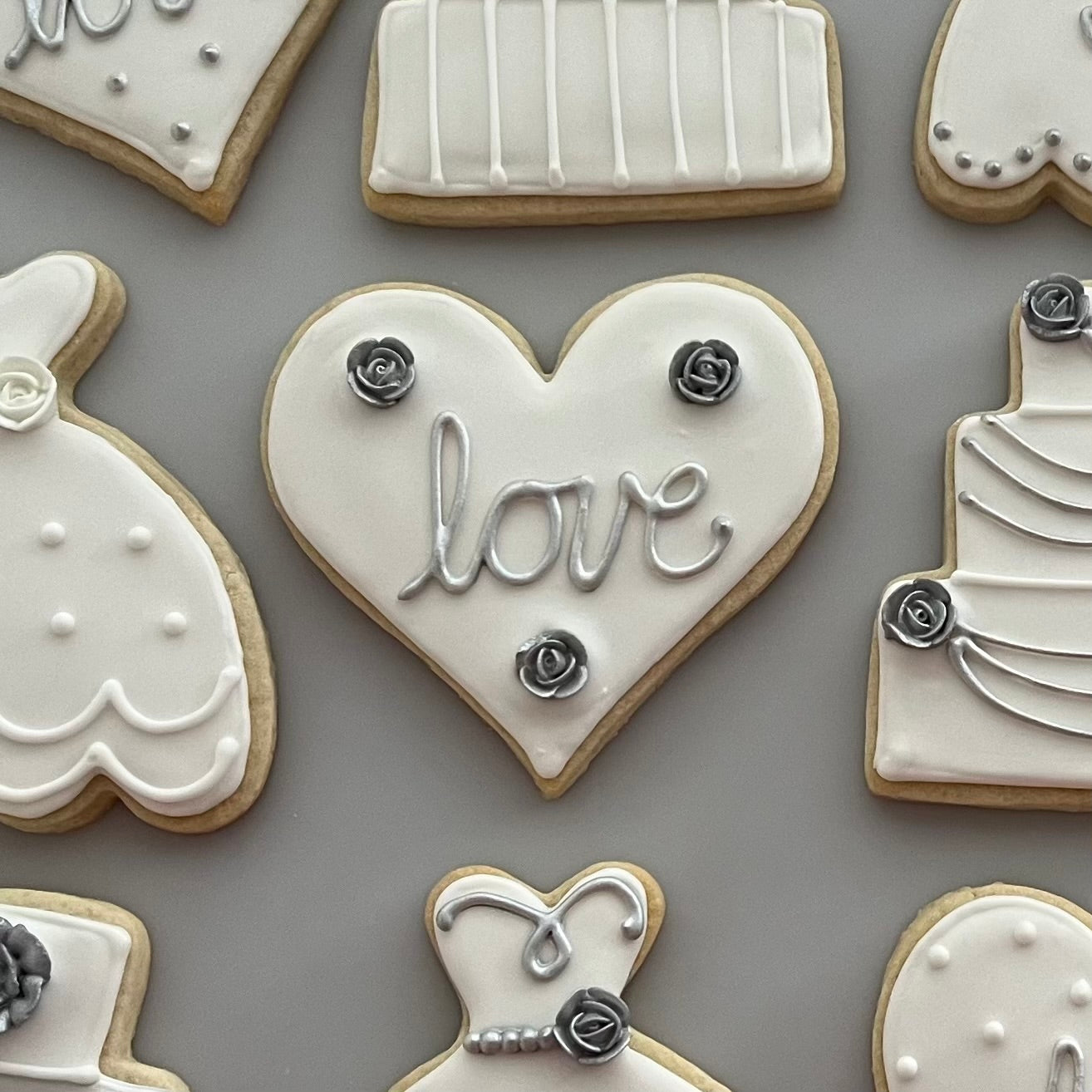 Add a touch of luxury to your wedding with these stunning silver sugar cookies. Each cookie is meticulously hand-decorated with royal icing and designed to match your event’s color palette. These cookies are as delicious as they are beautiful, with a soft, buttery vanilla flavor your guests will remember.