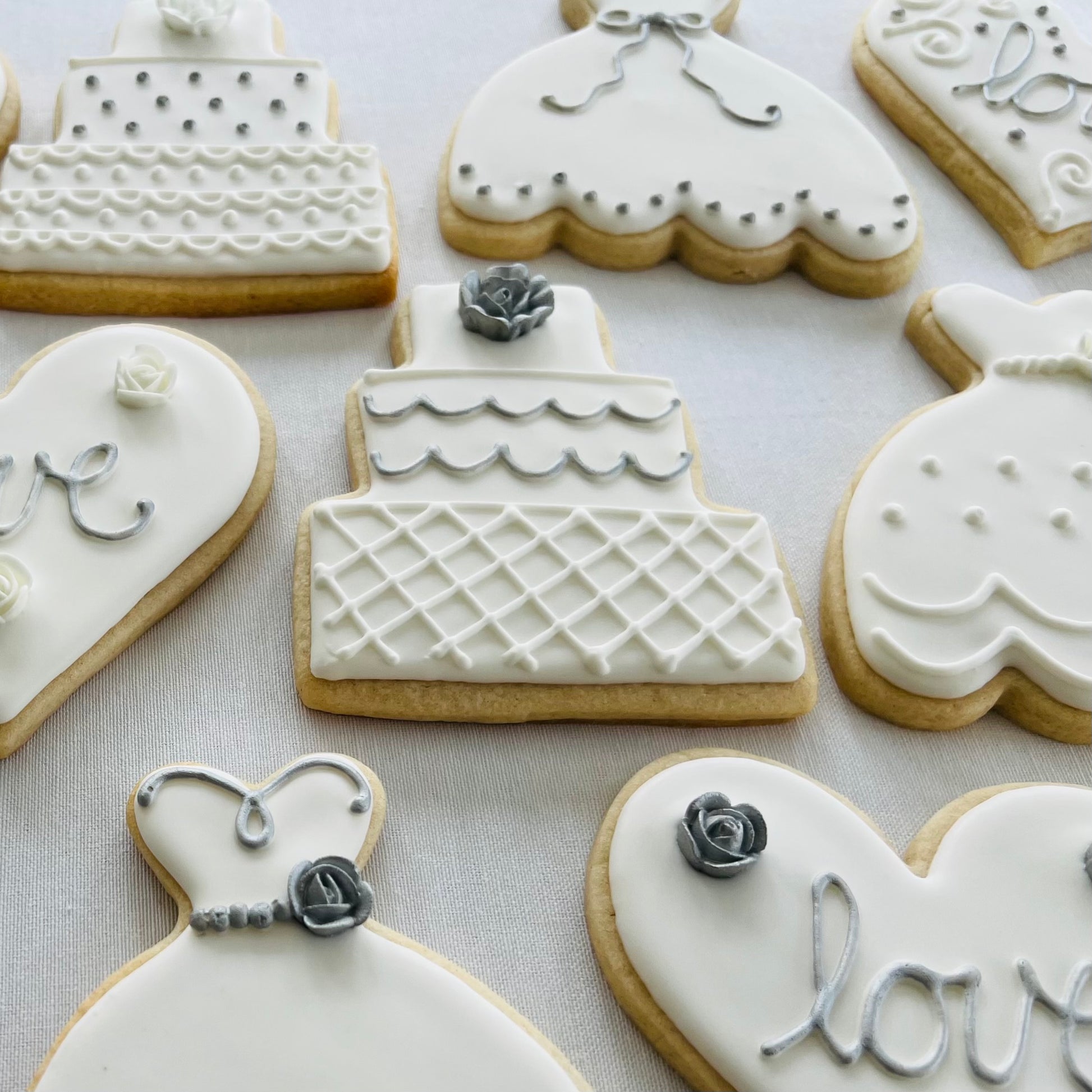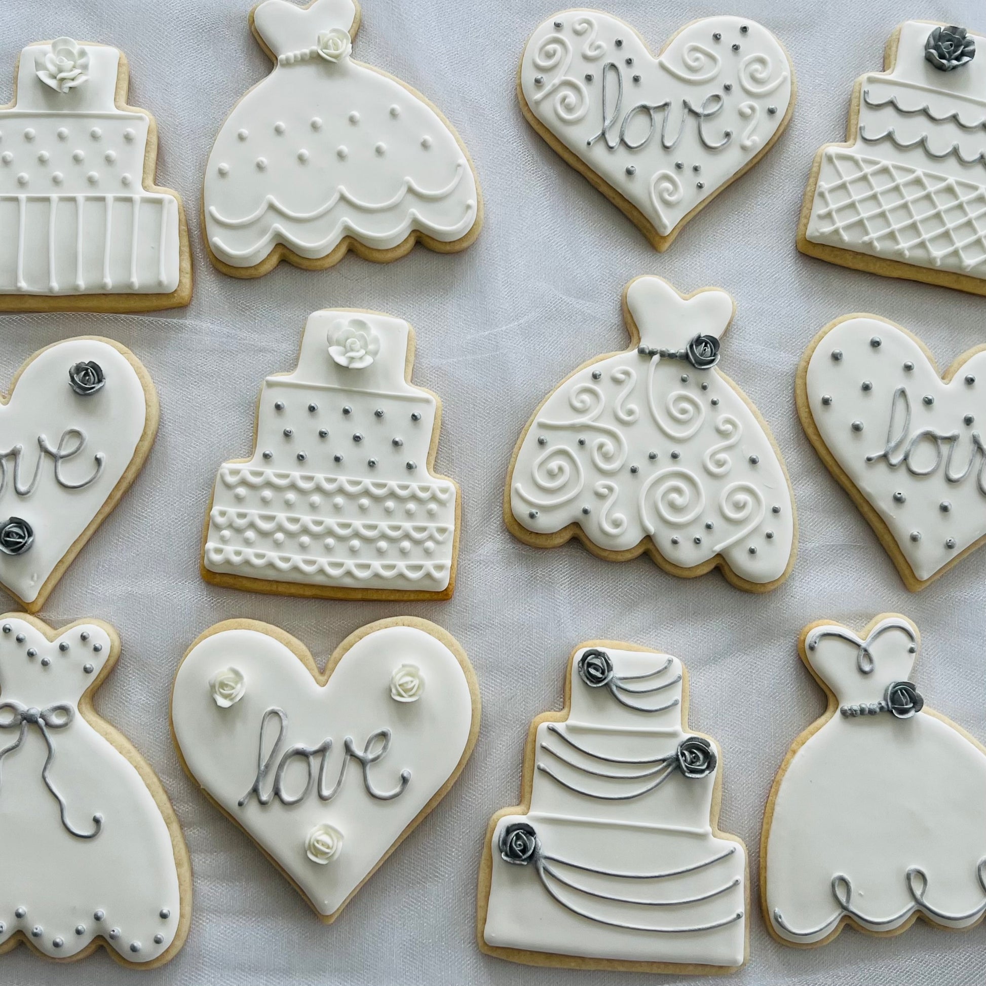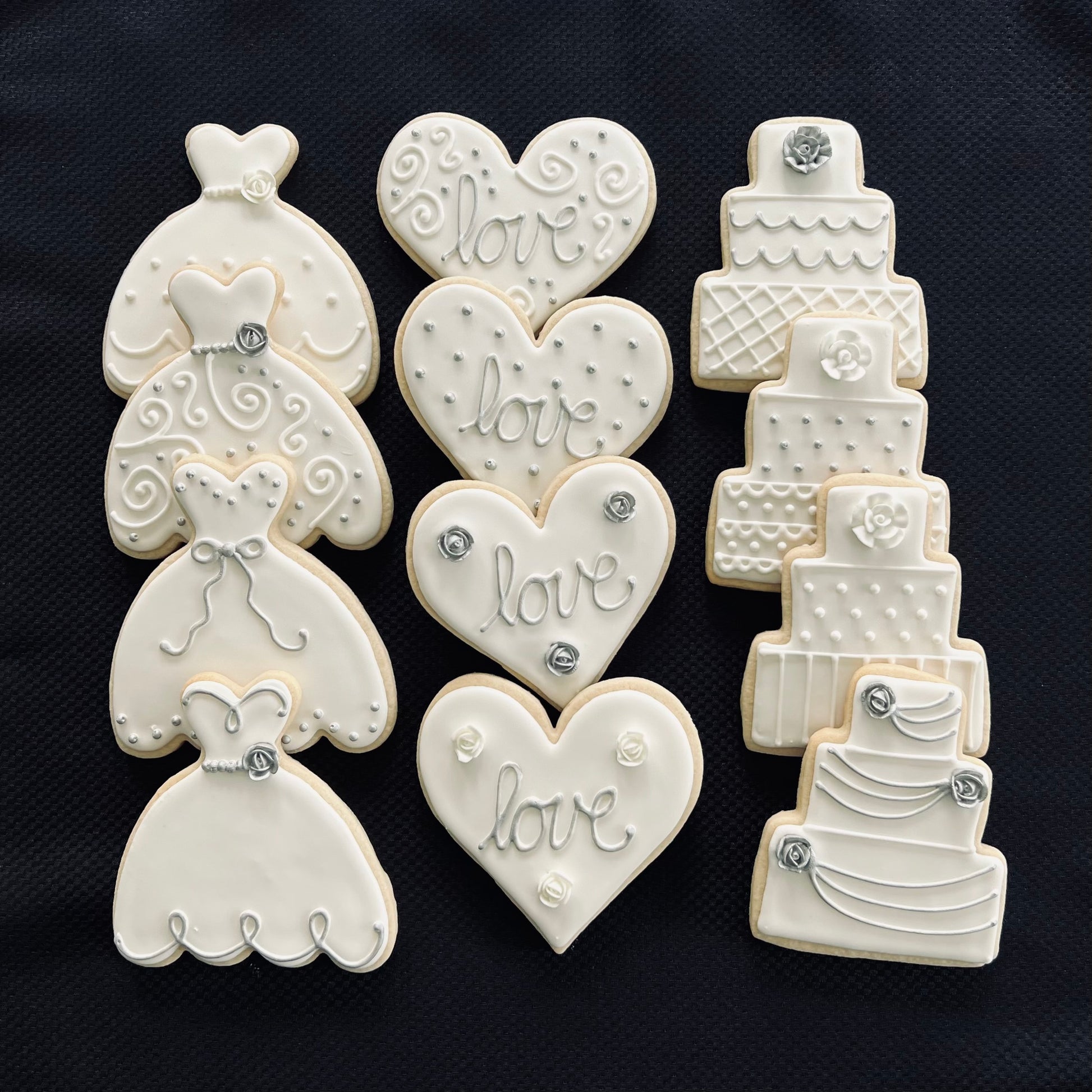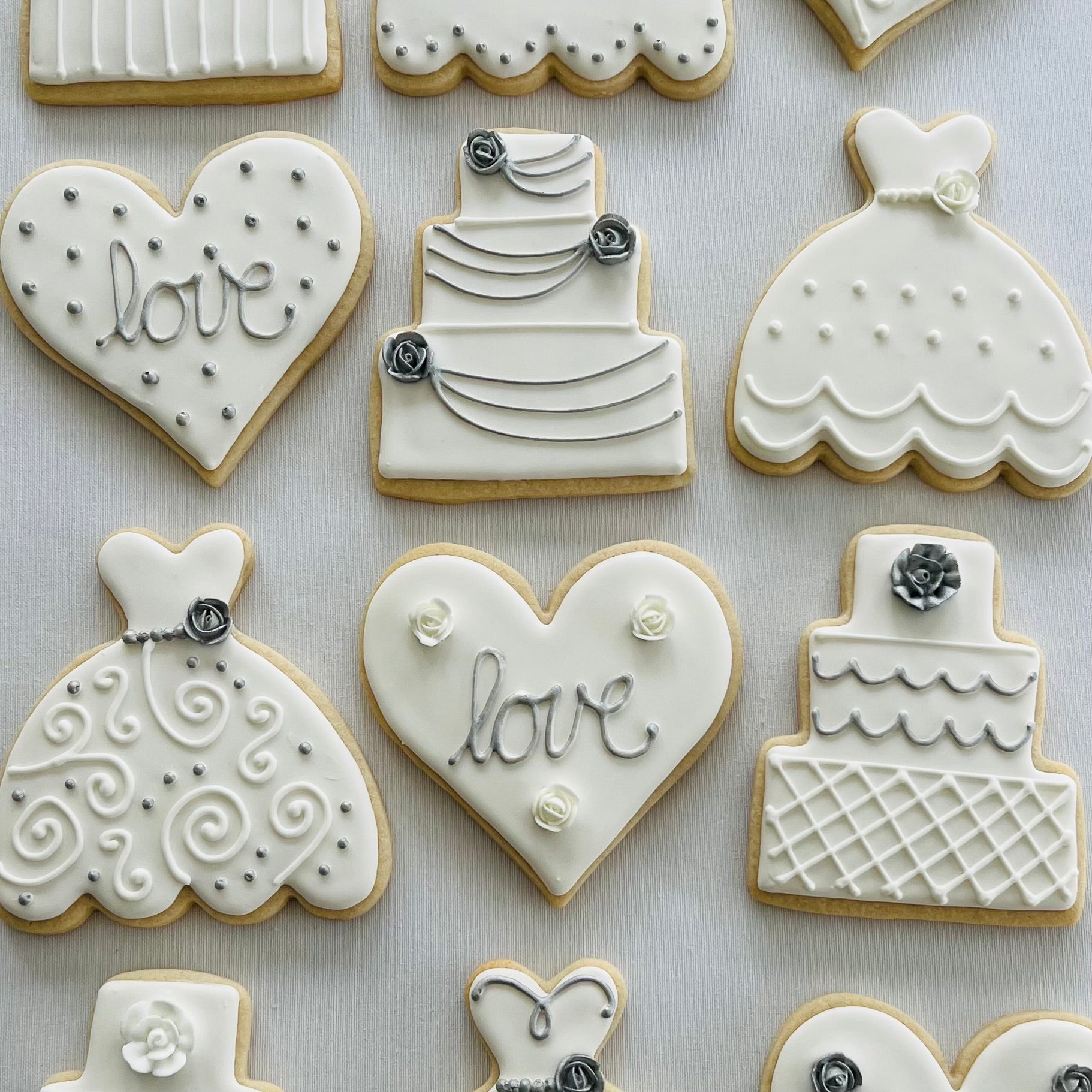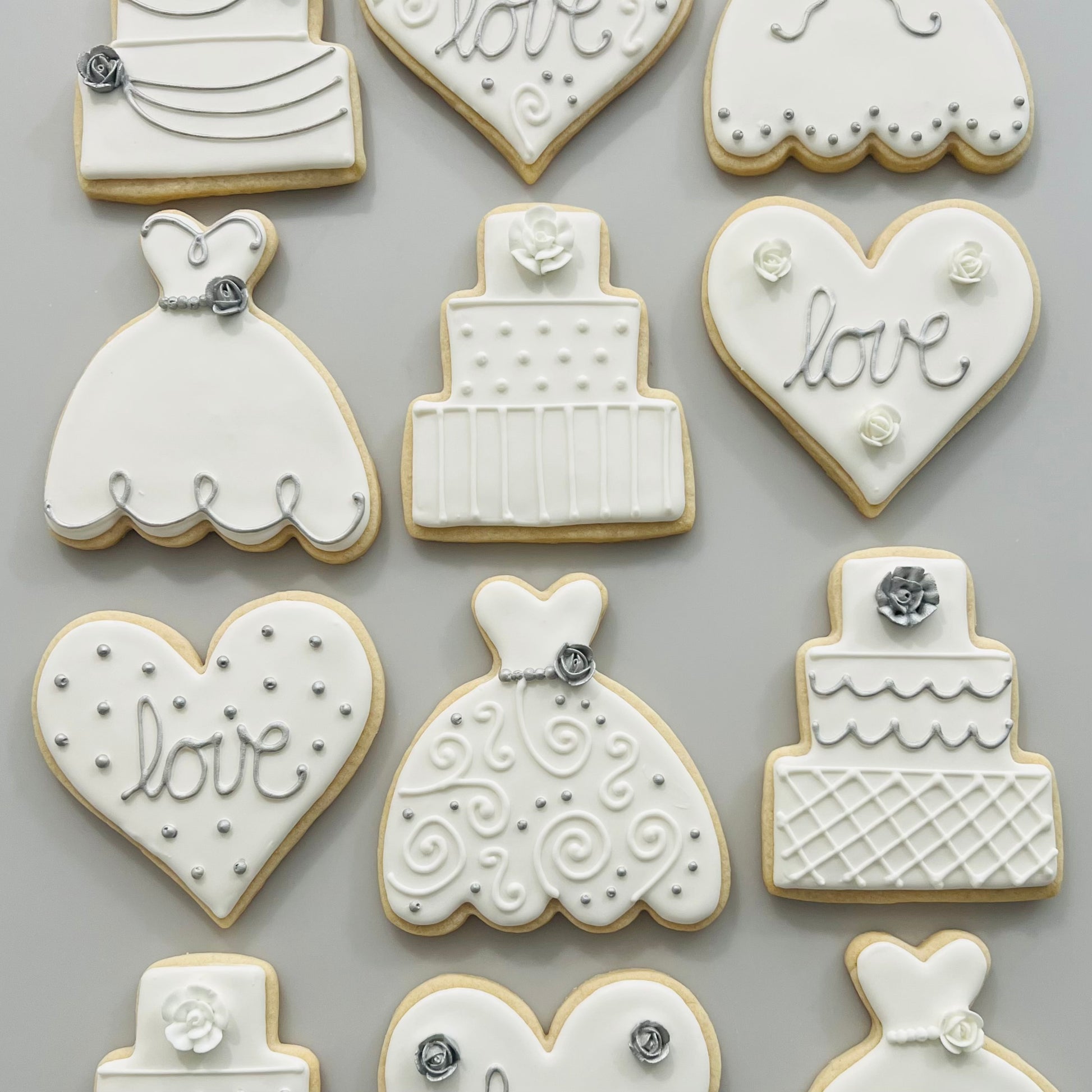 One Dozen Silver Wedding Cookies – Elegant Personalized Sugar Cookie Favors